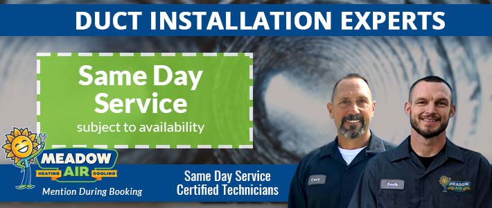 Not to worry, Meadow Air Heating & Cooling is here to help with your duct sealing needs. We have the customer’s best interest in mind and assure that you won’t be wasting hard earned money with faulty duct work in your home. Enjoy a cool summer and warm winter with our efficient and trustworthy services.